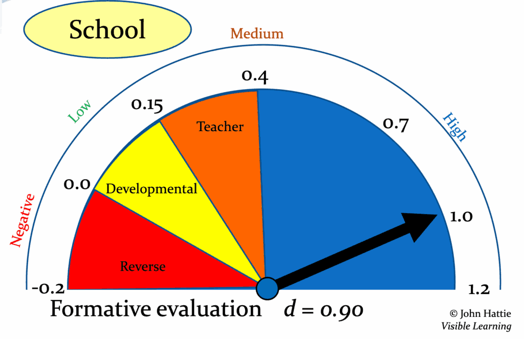 John Hattie, an education metadata researcher and author of Visible Learning, found that formative assessment was one of the most effective tools educators had to influence student learning, with an effect size of 0.90. Effect size suggests that anything over 0.40, which is what we can expect from an average year of schooling, is considered to have a positive impact. Therefore, an effect size of 0.90 suggests that formative assessment has the potential to almost double the amount of student learning expected in a school year.