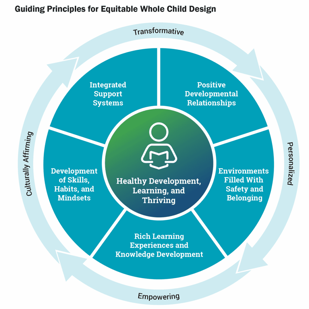This graphic from the Learning Policy Institute outlines the key components of what designing for the whole child entails. Refer to the “Create the Conditions for Learning Acceleration” section of this PAL for additional guidance on this topic.